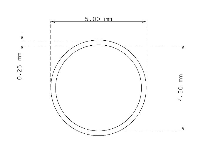 Welded and redrawn tube in stainless steel. External and internal calibrations. Type AISI 304, hard treatment, manufacturing tolerances: +/- 0.05.